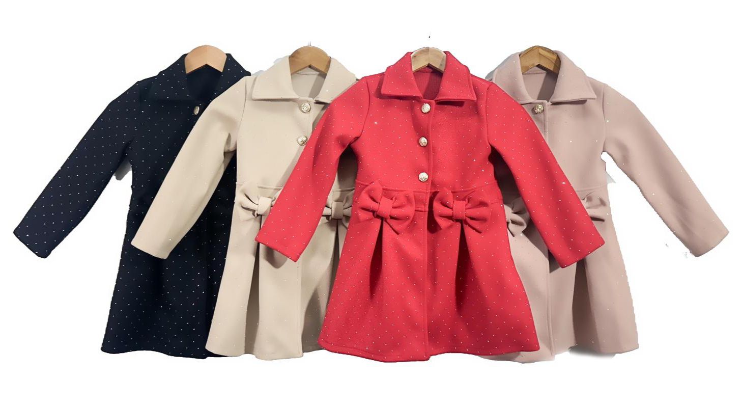 Gorgeous coat, with diamonte sparkle, bows and gold button detail. Perfect for festive activities.