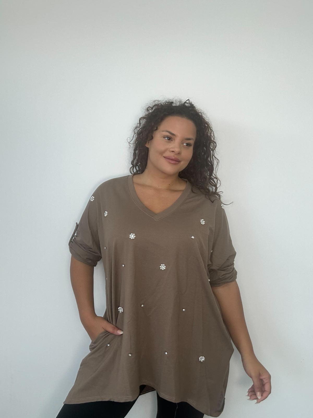 How cute is this gorgeous embellished tunic with pocket. This can be dressed up or down for any occasion!