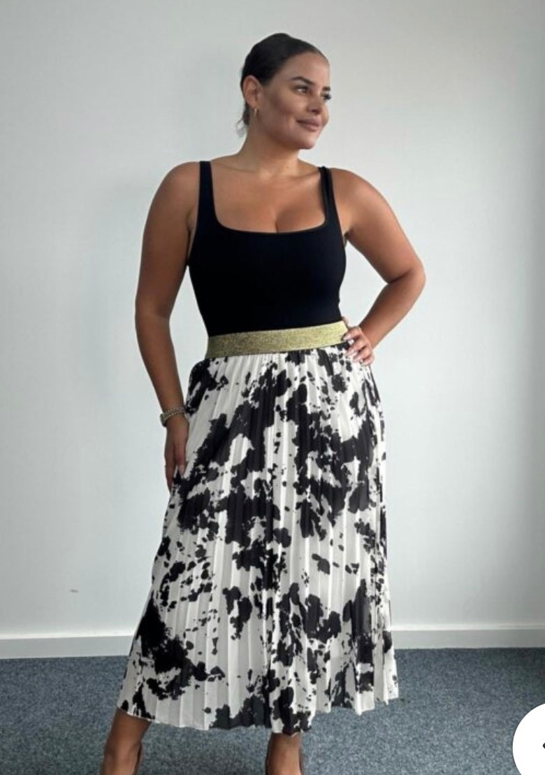 A gorgeous pleated maxi skirt with an eye catching print. Team with a tee and trainers for a laid back look or add a heel for for more of and occasion look!