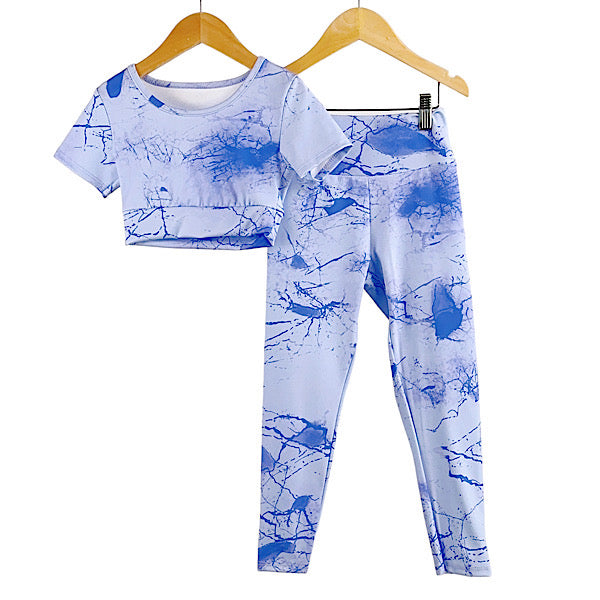 You cant go wrong with a crop top and leggings combo! This is the popular choice for girls! We love the splatter print bringing a little fun!