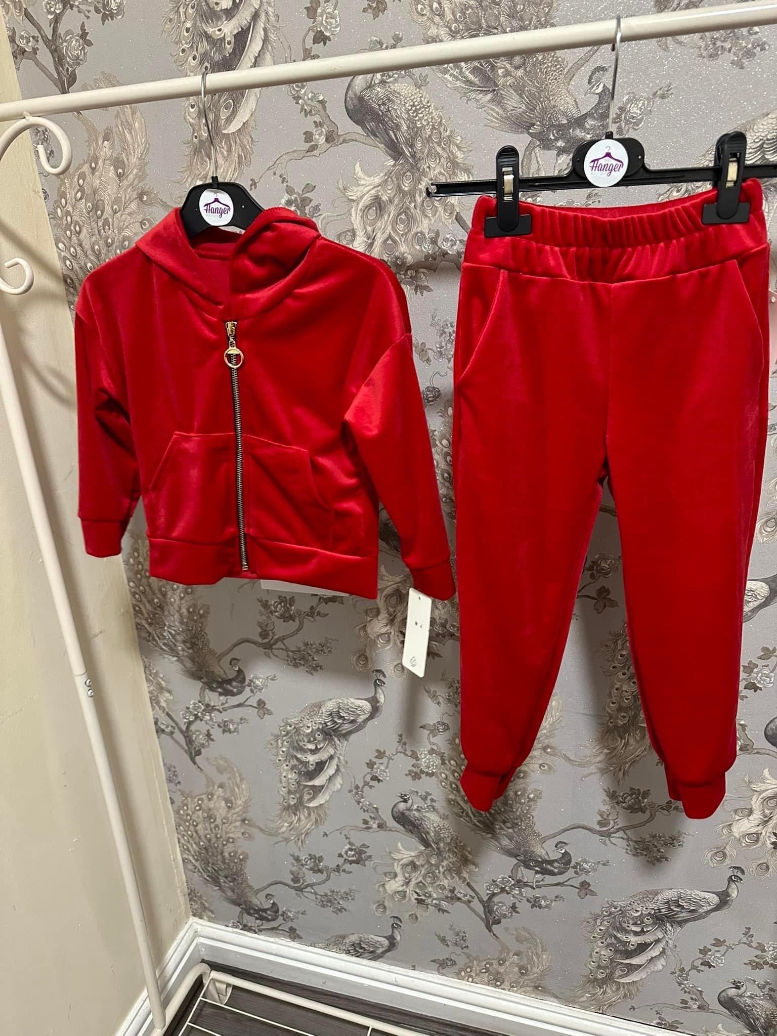 Gorgeous velour 2 piece jogging suit with studded details on back of zipper and joggers.