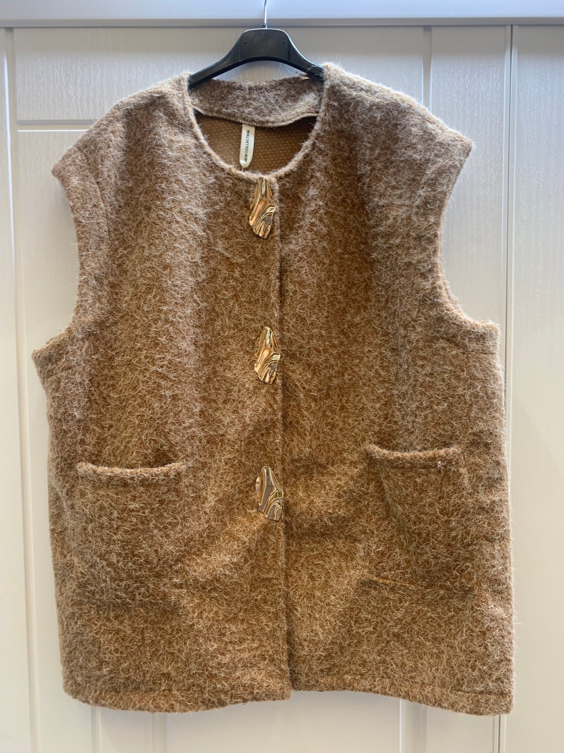 Stunning Mohair style waistcoat with removable gold brooch buttons! This piece is perfect for A/W for layering up whilst looking fabulous.