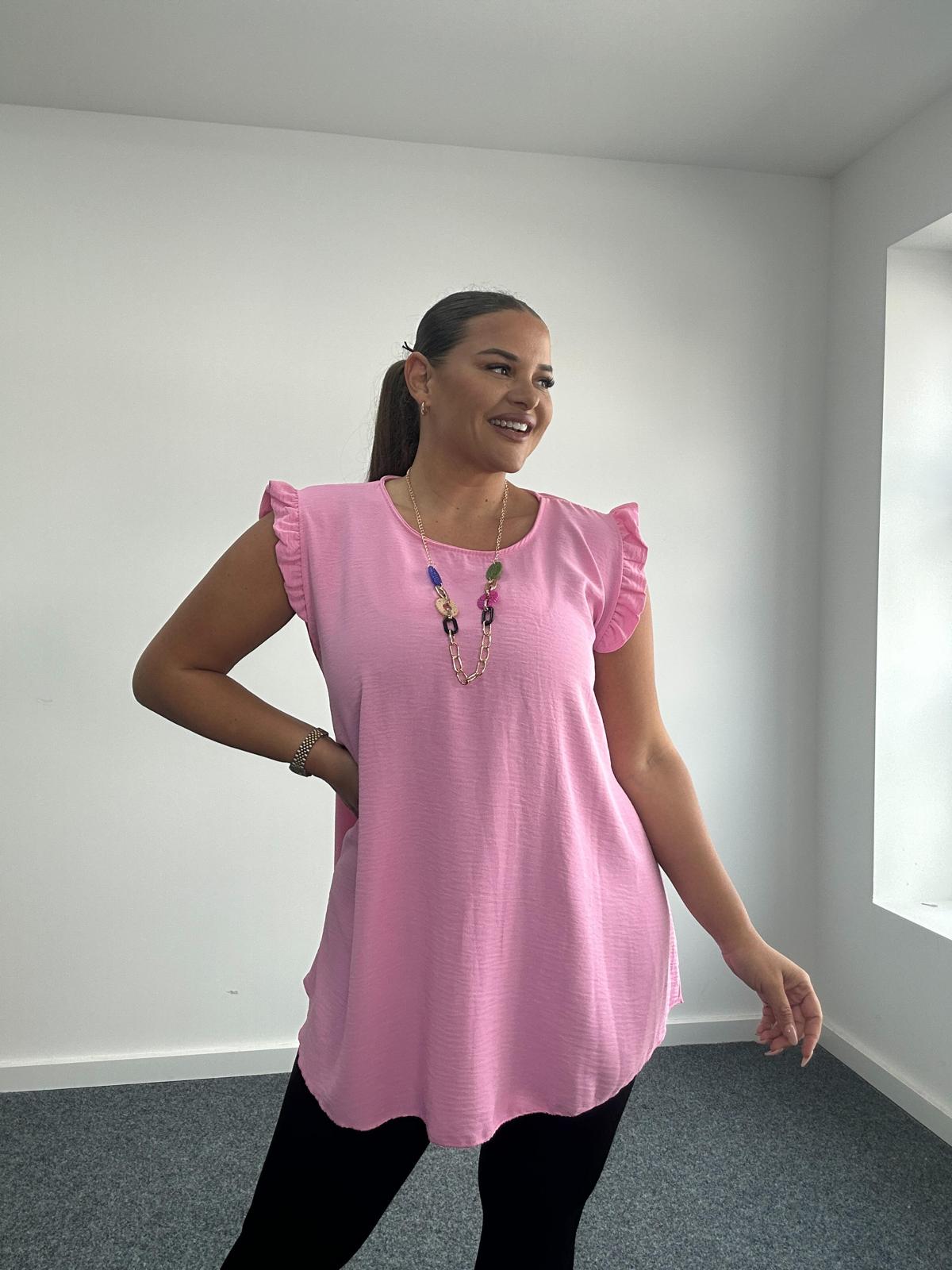 Gorgeous longline top, with frill shoulder and Necklace. Pair this top with anything it’s the perfect summer staple