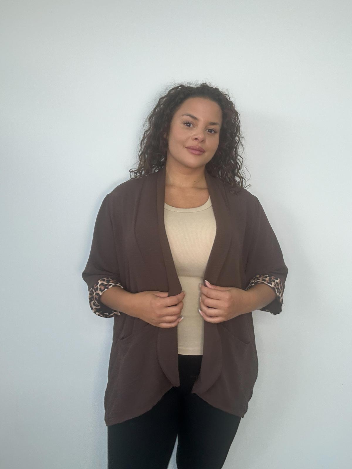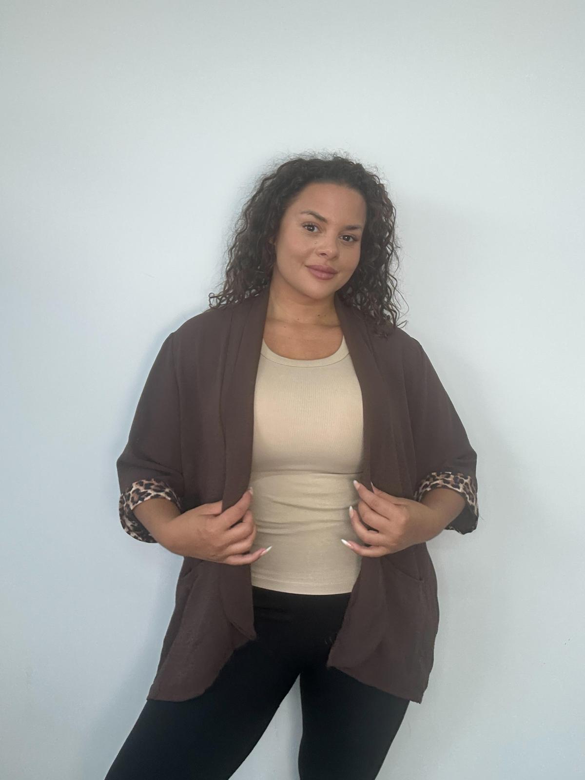 Check out This beautiful lightweight jacket/ cardigan with gorgeous leopard print turn ups making it it bang on trend for A/W
