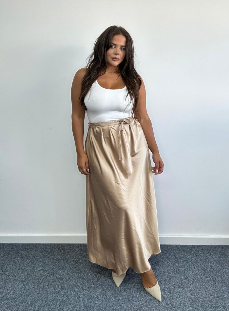 This gorgeous satin maxi skirt is perfect for taking you from day to night!!