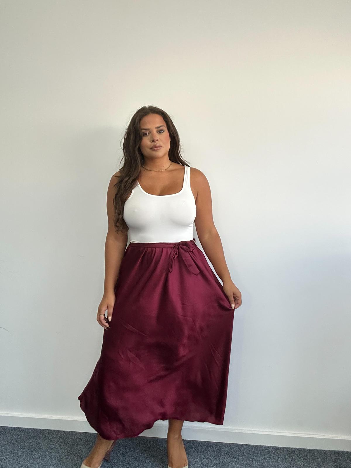 This gorgeous satin maxi skirt is perfect for taking you from day to night!!